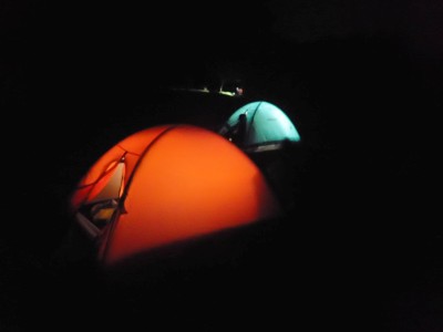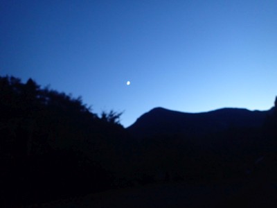 下山は往路を戻るが、途中で足がつり、3分ほどで回復したが、日頃の鍛錬が足りないと反省。 そしてソババッケから薄暗くなってきた道でタヌキに2匹に遭遇。私たちを見る可愛い顔が今でも目に浮かぶ。無事下山してキャンプ食を済ませ、星空を眺めながら床についた。明日は花牟礼山。 今日も自然に山に山友に感謝!!