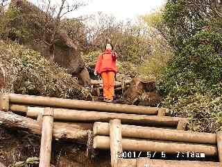| 丸太の階段 | この時間だと登山者が少ない | |