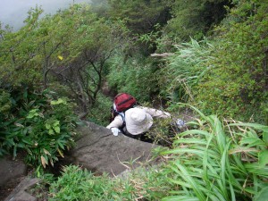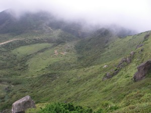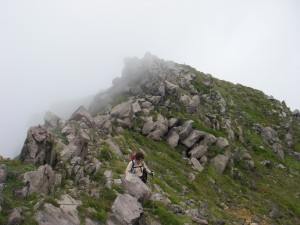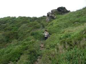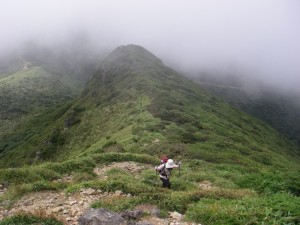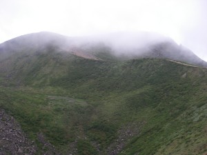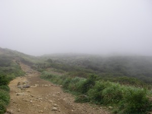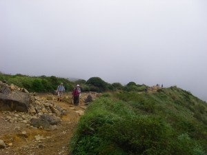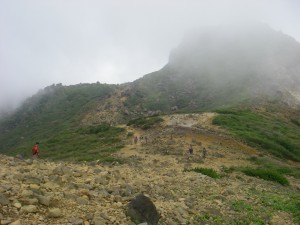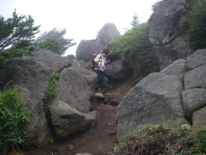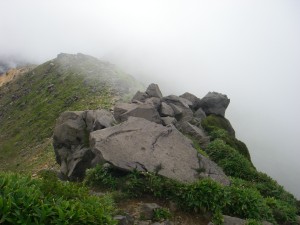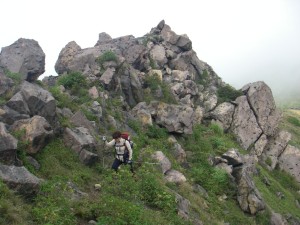| 巨岩を通過 | ホクチアザミ | ガスで視界はいまひとつ |