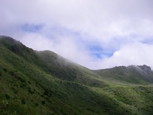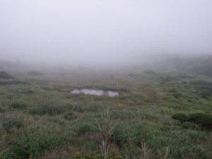 | 三俣山側を眺める | 久住山(ガスで隠れている) | 空池 |