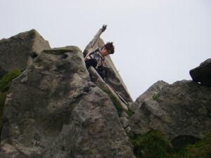 | 西千里浜 | この上を目指す | 急な岩場をよじ登る |