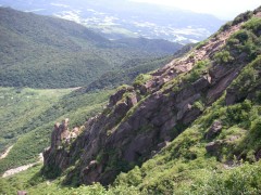 | 荒々しさを感じる岩肌 | 立中山は、遥か下 | 由布岳が遠くに見えた |