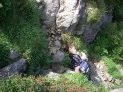 | 崩落したところに出た | 小さな分岐標識 | 上を振り返る |