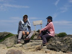 | 最後の岩場をよじ登る | 山頂だ | 記念に |