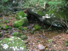 | 巨岩の下 | でかい! | 見下ろすと池が |