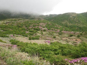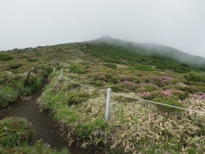 | ガスが覆ってきた | 沓掛山を降ったところ | ミヤマキリシマ |
