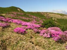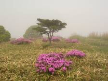 2005/6/5 天気 晴れ ミヤマキリシマの観賞に九重に出かけた。 先月の三俣山と同様、車中泊をすることにした。昨夜午後7時半に自宅を出発し、牧の戸峠についたのは午後10時、濃霧で視界が利かずようやくたどり着いたが既に駐車場はほぼ満車だった。 翌日、午前6時に起床した。昨夜一旦星空が見えたように思えたが、ガスは依然として視界を遮り、そのせいか寒さを余計に感じる朝だった。 このガスの中、次から次へと登山者が集まり、売店前は早朝とは思えない賑やかさである。さらにトイレは「大」を待つ時間は何と15分から20分と渋滞である。 結局、私たちが出発したのは8時だった。 ガスはまだ立ち込めている・・・・ 今日のコース 牧の戸峠の売店横より舗装された遊歩道を準備体操の変わりにゆっくり歩くと休憩場のある広場に出ます。ここより少し急坂ですが、マイヅルソウや景色を眺めながら木の階段を上がると稜線に出ます。ここで一息ついて阿蘇山などの遠望を楽しみ、さらに岩場を行くと沓掛山山頂です。(この辺りが行列ができてなかなか進みませんでした)さらに進むと平坦な道となり視界が開け右手に「扇ガ鼻」が見えてきます。 牧の戸峠から約90分で「扇ガ鼻」への分岐点です。標識がありますので右手に緩やかな上りを行きます。イワカガミの群落を見て人登りすると急に視界が開け見事なミヤマキリシマの群落が目に入ります。平坦になりますがすぐに急な登り道が目の前に現れます。下りの人と道を譲り合いながら一登りするとまたまた視界が開けさらに見事なミヤマキリシマを目にすることができます。こちらは割と登山者が少ないため穴場かもしれません。 右手の巨岩を目指し、緩やかな上りを進み、巨岩の間を抜けると「扇ガ鼻」山頂です。ここで一休みして往路を下りますが途中、右手久住への道程を行きます。 久住へのコースとの分岐より西千里浜を左手にし右手には「肥前ガ城」が目に入り平坦で広い道を進みます。やがて右手に巨岩が目に入り、岩場にぶつかる手前で標識がないのですが踏み後を頼りに右手より戻るようにして緩やかな上りを行きます。巨岩の横をとおりイワカガミの群落に目を奪われながら回り込むようにして稜線を進むと「肥前ガ城」の山頂に到着です。帰路は往路をとります。 アクセス 湯布院ICより水分峠、やまなみハイウェイを約25Kmで長者原。さらに約5Kmで牧の戸峠 |