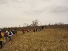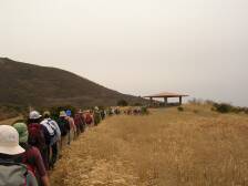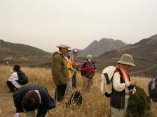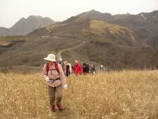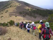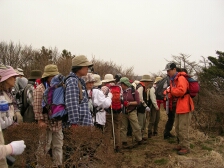 <参考コースタイム> ・黒岩山 牧ノ戸峠駐車場−(40分)−黒岩山山頂−(20分)−牧ノ戸峠駐車場 ・合頭山・猟師山 牧ノ戸峠−(10分)−猟師山登山口−(20分)−猟師山・合頭山分岐点−(15分)−合頭 山山頂)−(10分)−猟師山・合頭山分岐点−(30分)−猟師山山頂−(25分)−猟師山・ 合頭山分岐点−(15分)−猟師山登山口 Yさんによる唐松の話 「松なのに落葉している」という投げかけに参加者は不思議に思う。松の種類には間違いな いが言われてみると本当に不思議だ。そこでYさんは「これは唐松です。唐松は本州にしか 分布していないはずです。でもここにあると言うことは植栽しているということです。」・・・んん なるほど。なぜこんなところに植えたんだろう?と疑問に思うが戦前は結構唐松の材木(建 築・土木、パルプ等)は需要が多かったとのこと・・・・勉強になりました。 温泉 帰りはゆっくりでもないが、温泉に寄った。改めてこの計画が大変だったと思う。 おかげでさっぱりしてバスの中でゆっくりできた。 帰りのバスの中 つかれて眠ってしまうはずの帰りのバス、ビールやジュースの車内販売、「穂高よさらば」の 歌を今日の旅での替え歌にして発表すると言う遊びもあり賑やかな帰路となりました。 おかげで私たち夫婦が「のんべぇ」なのがばれてしまいました。 花 可愛いキスミレとショウジョウバカマをみつけました。 でも踏んづけたり、摂ったりしないように大切にしたいものです。 |