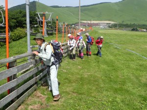 | 準備体操(9:45) | ゲレンデの脇を猟師山目指して歩く | 勾配は緩やか |