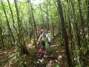 | 緑が鮮やかだ | 林道に出る | 帰りはウサギ道を降る(13:41) |