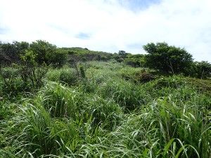 | 分岐点(11:30) | 三角点から北へ直角に進む(11:44) | 合頭山の頂上が見える |