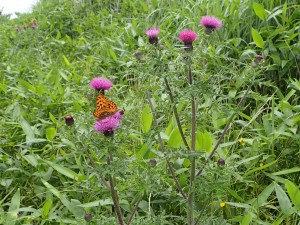 | アザミと蝶 | 巨石が結構ある | キイチゴの仲間のようだ |