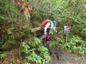 | 再び猟師山頂上(13:05) | 往路を戻る | 滑らないように注意 |