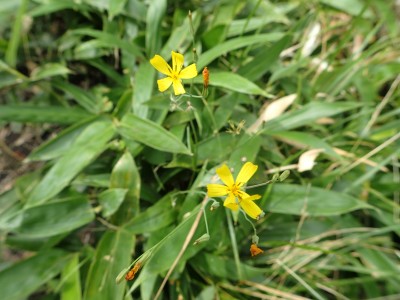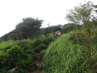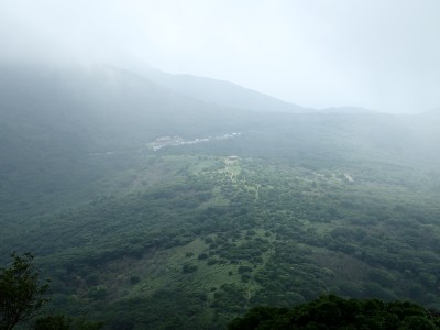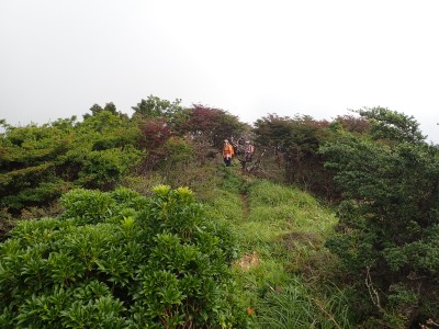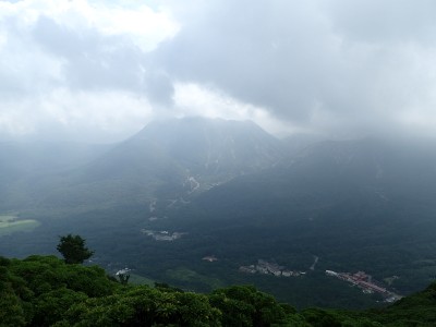 稜線歩きを終えていたので本当に良かった。牧ノ戸峠から自然歩道を歩く。ほぼコンクリートの道だ。何度か車道に出たりして無事長者原。雨がポツポツと降り出したがすぐに止む。しかし、南の空は雨雲が見える。きっと阿蘇の方は雨が降っているのだろう。今日も自然に山に山仲間に感謝!!