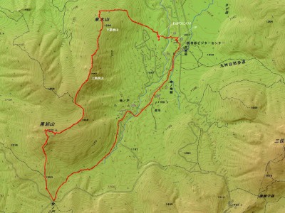 長者原-(90分)-下泉水山-(40分)-上泉水山-(60分)-黒岩山-(35分)-牧ノ戸峠-(60分)-長者原