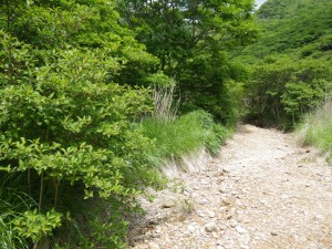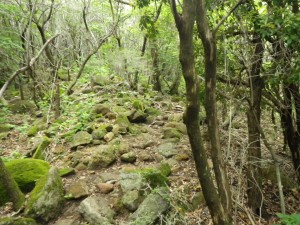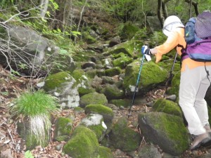 | 鉾立峠まで400m | 石がごろごろとした道 | 階段状になる |