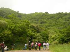 山頂は、たくさんの人で落ち着く場所がありません。次から次と登山者がやってきます。ゆっくりと展望を味わうことも出来ず、記念撮影を済ませ(近くにいた人が撮ってくれました。)早々に下山することになりました。山頂より南側(登ってきた反対側)より下山します。ひたすら降ると標識がある広場に出ます。さらにくだり、入山公碑に立ち寄ります。どんどんまた降り牧場のあるコンクリートの道にでます。牧場の横を通り、舗装道をいくと岳麓寺登山口に着きます。 ここには駐車場がありますが、バスは入って来れないのでさらに車道を、バスの待っているところまで歩きました。 温泉 前回の(4/9)バスハイクで立ち寄った温泉に今回も行くのですが、バスに戻った私たちは、温泉まで待ちきれず、車内販売のビールやジュースを頼みました。 バスならでは楽しみです。 感想 今回は長い道のりにも関わらず、何事もなく無事に下山できました。 ペースメーカーとして先頭をさせていただきましたが、皆さんから「遅からず、早からずでちょうど良かった」とお言葉をいただき大変うれしく思いました。(結構難しいですよ) また、大先輩のお話も聞けて大変勉強になりました。 また、皆さんとお逢いできる事、楽しみにしたいと思います。 |