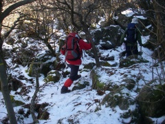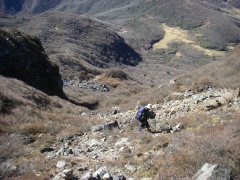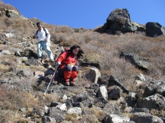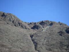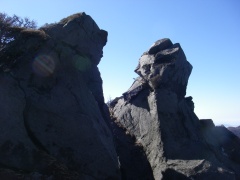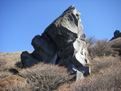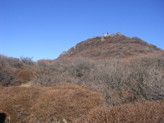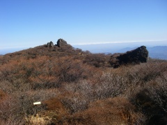| 山頂に人が見える | 東側に見える奇岩 | 潅木帯の中を進む |