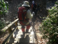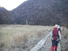 | 鉾立峠 | 木段がある | 佐渡窪へと川原を歩く |