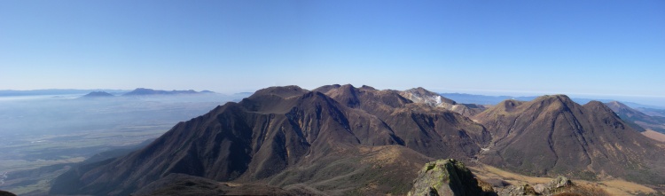 | 大船山山頂から見た九重山群(左奥は、阿蘇山) | ||