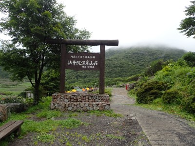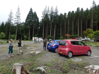 と言うわけでヨッシーに迎えに来てもらい我が家を出発。東九州道の北九州空港I.Cから上毛スマートで流出し、山国川沿いに耶馬溪、深耶馬溪、玖珠、色彩ロードを経て吉部登山口手前の駐車場に到着。車中で見た九重の峰々はガスで覆われているようだが、『きっと朝霧だろうから午後は晴れ間もでるだろう』なんて軽はずみな発言をして登山口へ向かう。