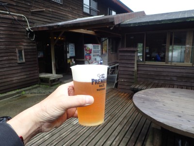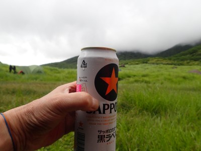 早々に下山した私たちは、法華院温泉山荘に直行。生ビールでとりあえず「乾杯!」、 テントに戻って再び「乾杯!」とホロ酔い気分になっていると青空が・・・・。でも一瞬だった。