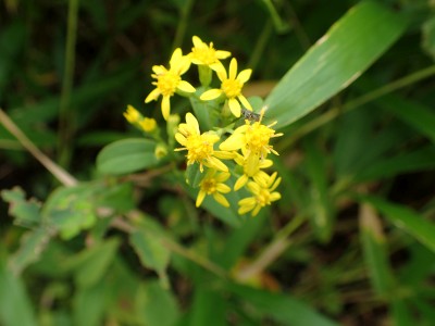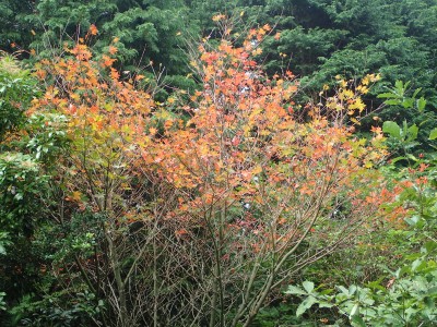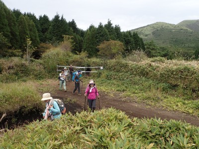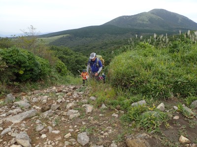 「暑さ寒さも彼岸まで」と言うが、昼間は未だ暑い。しかし、登山口に着いて車を降りるとなんと涼しいことか。今回の山は涌蓋山、九重連山の北西に位置し、独立峰である。山容が円錐型で玖珠富士、小国富士と呼ばれている。九重I.Cから四季菜ロードを走ると右手に一際目立って現れる。