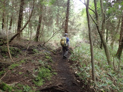 短いが狭いヤセ尾根から広い斜面へ橋を渡るように進む。私には涌蓋山の最も魅力的な場所と認勝手に定している。
