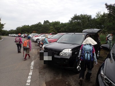 登山口に着いたのは午前8時40分頃ね、既に多くのくるまが停まっていて登山準備する人たちも多い。