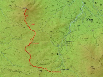 八丁原登山口-(60分)-ミソコブシ山-(35分)-涌蓋越-(35分)-女岳-(17分)-涌蓋山頂上-(40分)-涌蓋越-(90分)-八丁原登山口 ※休憩含まず。全行程で約5時間半でした。(距離12.1km 標高差362m) |