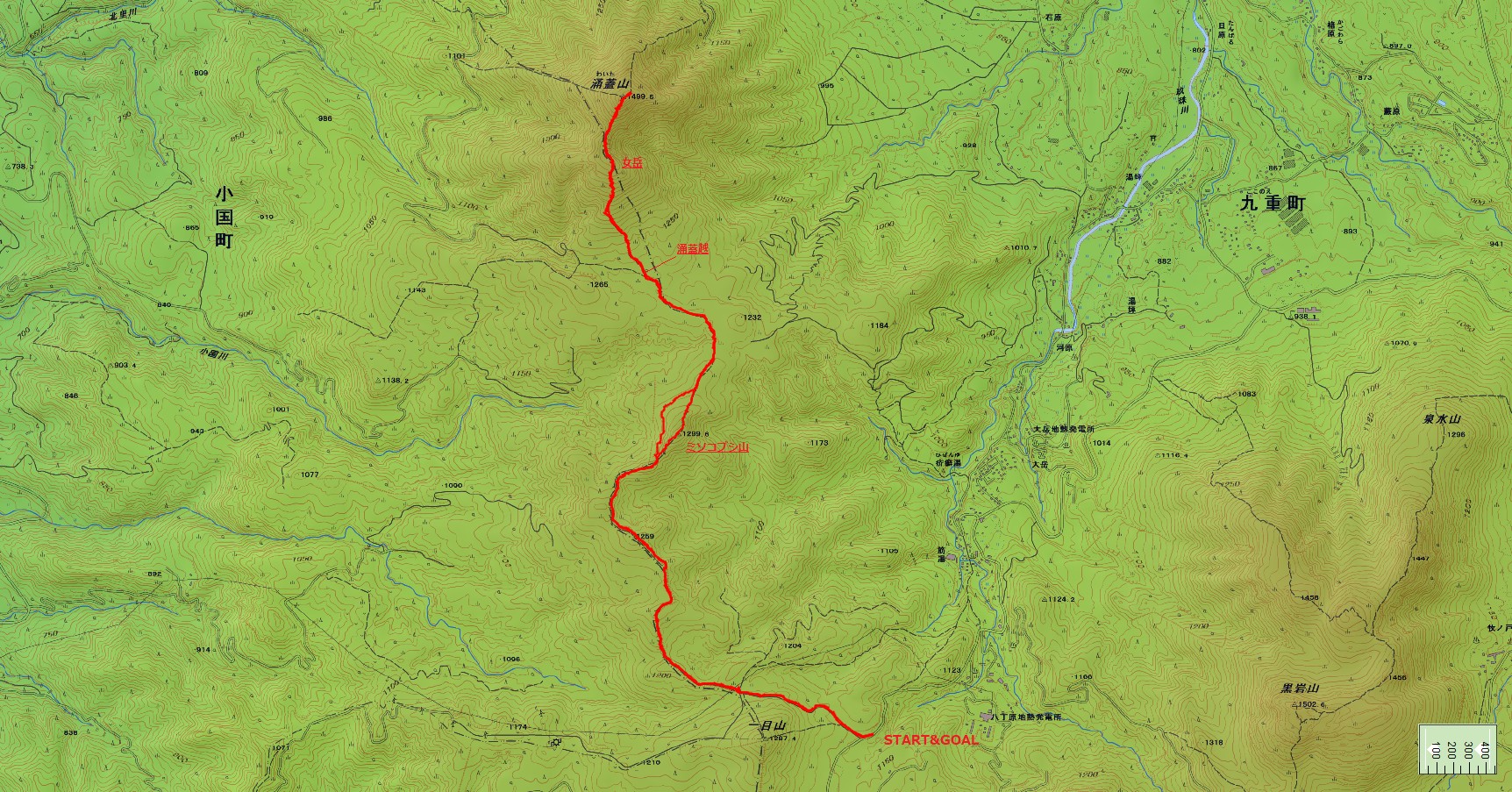 涌蓋山登山コース(GPSによる歩行軌跡)