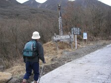 2007年3月10日 曇り一時雨 今回、マンサクを見に九重に行こうとなった。遊山歩のリーダMORIさんが、「指山でも十分見れるはず」とのことでMORIさん夫婦と私たち夫婦4人で出かけた。 いつもの豊前おこしかけで待ち合わせをして長者原を目指して出発! <アクセス> 省略 <今回のコース> 長者原は九重登山口をすがもり越方面へコンクリートの車道を歩きます。しばらく歩くとカーブのところに「指山観察路入り口」と表札があります。ここより山道です。しばらく北に向いますが途中で観察路から登山道へ分かれます。右手上り道となり、今度は南向きに捲くように高度を上げて行きます。何度かジグザクに進み、マンサクが開花している場所に着きます。かなり上部です。マンサクを満喫したらさらに林の中を行き、急に視界が開け黒岩山や泉水山を振り返り、しばらく行くと山頂です。ここまで踏み後はしっかりしていますが、マンサクに見とれて林の中へ入り、登山道を見失うことのないよう注意が必要です。(荷物を置いて見える範囲で行動するのが良いかと思います)今日は途中から小雪となり、風が強いため、三俣山経由のコースは危険だというMORIさんの判断で一旦鞍部に降りて(マンサクがたくさん開花している)雨ケ池側の自然観察路へ出ることにしました。しかし、道は途中で崩落してなくなり、ガレバを2度横断しました。それでもマンサクがたくさん見れてなかなか面白いコースです。高度と地図での確認をして崩落したガレ場を用心しながら降り途中で昼食をし、自然観察路にぶつかりました。自然観察路にもマンサクが見れました。 自然観察路をそのまま降り長者原に戻ります。 <感想など> 今日は、予想より寒く、小雪が舞い、その後雨になり、天候は思わしくなかったが、マンサクの花がとにかく思う存分見れた山行きでした。 それと指山山頂手前で福岡から来られたというご夫婦の声をかけていただきました。 MORIさんと私のホームページを見てくれているとのことで記念撮影をしました。また、どこかでお会いしたいものです。 マンサク拡大写真 虹がかかる谷間 |