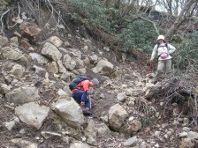 | マンサク満開 | 崩落して道がない | ここにもマンサク満開 |
