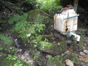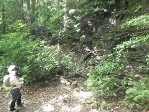 | 岩壁には清水が流れている | 何か書いてあるようだが・・・・・ | キノコが多い |