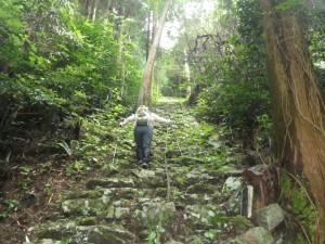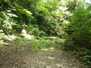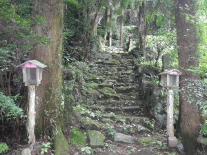 | 上宮で雨宿り | 石段を降る | 石灯篭がある場所に出た |