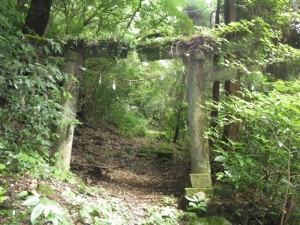 | 石灯篭がある | 鳥居があるが、この先は行きどまり | 岩屋は北宮となっている |