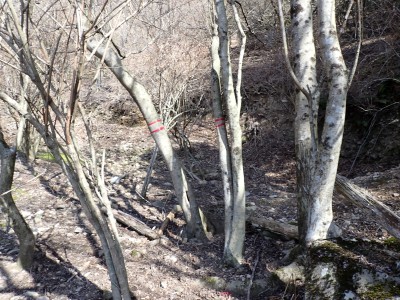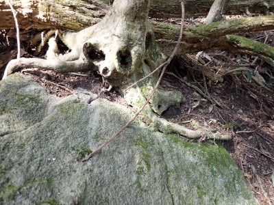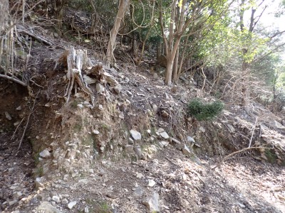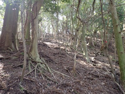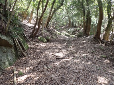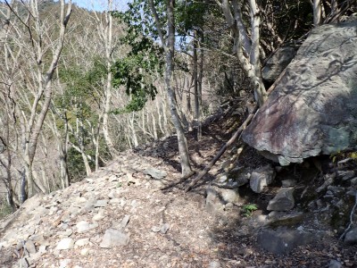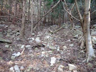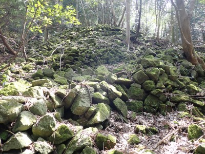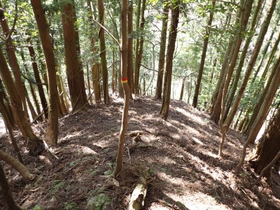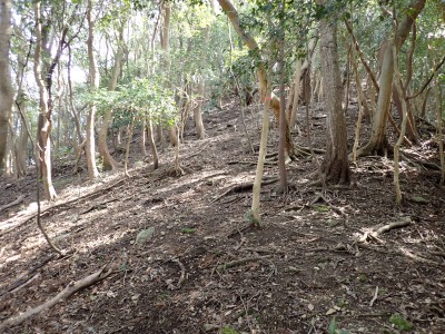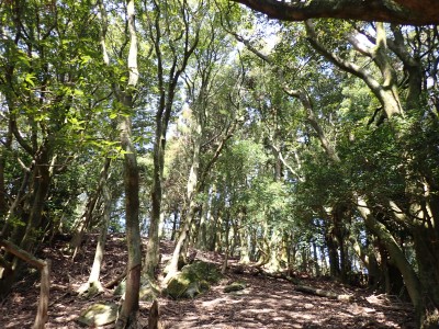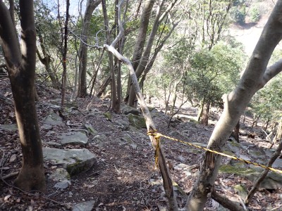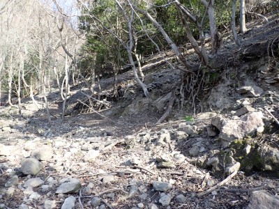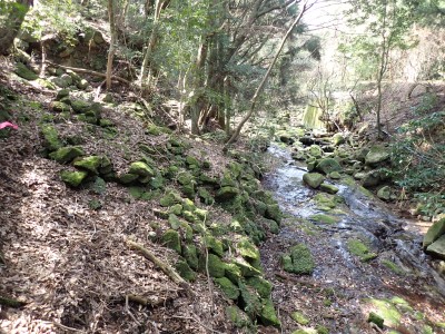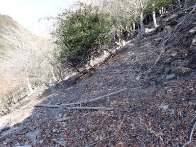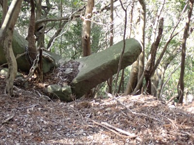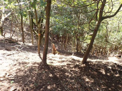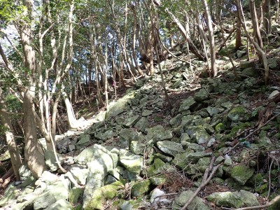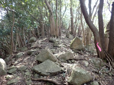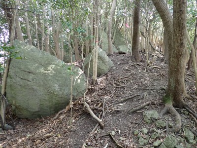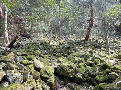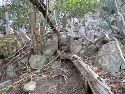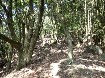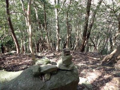 先々週に続き国東半島の山巡りに出かけた。今回は前回予定していた残りの山、登山口の確認は終わっているので迷うことなくスタート。まずは落合山、古く荒れた作業道を歩くが、途中でなくなったり道が分かれたりで地図がないととんでもない場所に行きそうだ。荒れた道は小石がゴロゴロして歩きにくい。急勾配を避けてジグザクに進めるのは救いだ。いよいよ終点間近の場所で「道がない」。地図を確認するが方向的には間違いないし、他に踏み跡もない。踏み固まれていない斜面は、頼れる樹もなく石もない。まともに歩くとズルズルと滑る。油断するとあっという間に谷底に滑落するであろう。「しょうがない這って行くか」と決断し進む。幸いその距離は短く、すぐに道らしき道に辿り着く。ほっとして数メートル進むと作業道終点で赤テープがたくさんある。ここから右の斜面に取付き登り切ると鞍部だ。鞍部から東へ尾根を行き落合山頂上。城跡なのか平坦で広場のような場所がある。落合山から往路鞍部まで戻り、今度は稲川山を目指す。一旦北方向へ進み尾根に取付くと西へと進みピークから一旦西南へと降る。再び登り返すと稲川山だ。南側が開けて展望が良い。休憩には良い場所だ。そして次は大嶽山、今度は北へ延びる尾根を降る。鞍部から登り返して広い山頂だ。展望はないが、切り開いた頂上は明るく広い。少々早いが、一人でランチタイム。今日も誰一人出合うこともない寂しい山だ。独り言を言いながら静かなひとときを楽しむ。下山は西へと降るが岩場の急斜面でトラロープはあるものの頼れない。持参した補助ロープを使い、無事に鞍部へ降りた。整備されていない登山道を単独で歩く場合はヘルメットとロープは必須だ。鞍部から南へと降る。まともな道がなくテープも見失ったが無事棚田跡に出る。登山口に出ると車道を20分程度歩き、スタート地点に戻りコーヒーを淹れ休憩。そして弥箇岳登山口へ。古いガードレールの先が登山口。ゴミを捨てる人がいるのがとても残念だ。川沿いに入り込み左の山手に取付く。何と苔むした岩だらけの斜面には驚く。そしてその石の中を進む。斜めに山腹を行くと土の斜面になる。とても不思議な地形だ。急斜面を喘ぐと細い尾根になる。時折巨石が現れる。急峻な尾根が続き緩やかな尾根に出ると頂上だ。樹林帯に中の狭い場所で三角点があるとは思えない。頂上から西へ延びる尾根は歩いてみたくなる明るい樹林帯だ。両子大橋の方へ出るはずなのでそちらからのルートができれば面白いかもしれない。下山は往路を戻るが、この急斜面は下山の方が神経も足の負担も大きい。無事下山したのは良いが、運転中に足をつってしまった。やはりクールダウンが必要だと反省。今日も山に自然に感謝!!