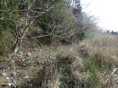 | 右側に小さなコンクリートの道がある |