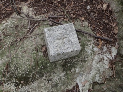 大岩の天辺に三角点の石柱が埋め込まれていた |