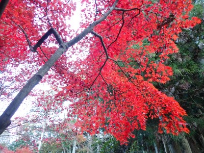 | 仁王像が迎えてくれた | 石段を上がる(9:05) | 真っ赤だ! | |