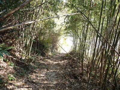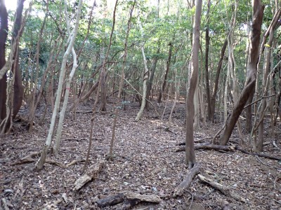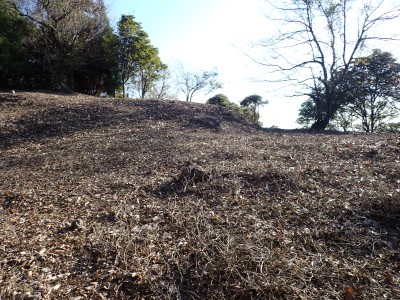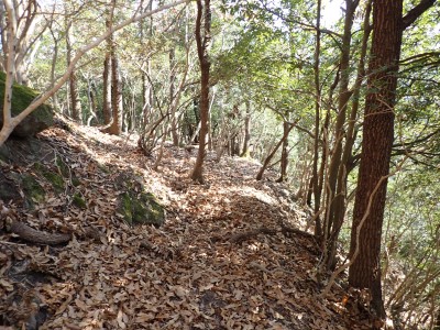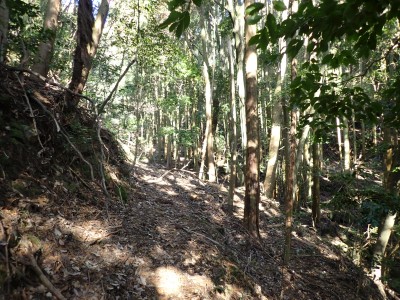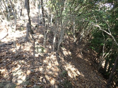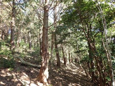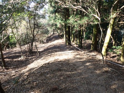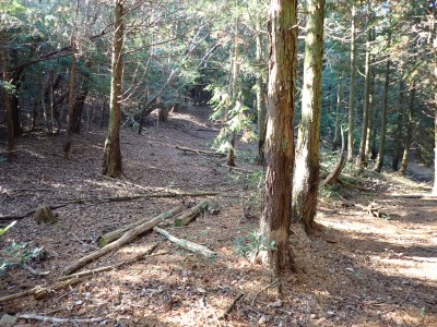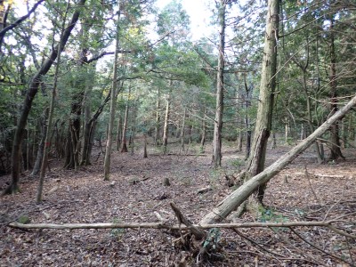 | 遠くに鶴見岳と由布岳が見える | 急斜面を真っ直ぐに登る | 登り切ると広場に出るがここも城跡だろう | |