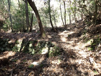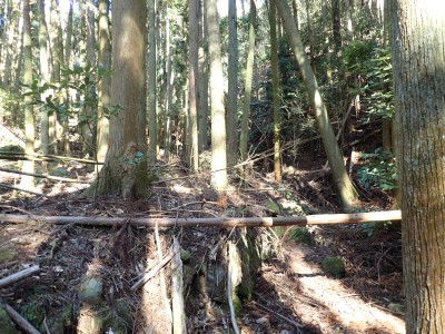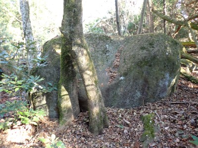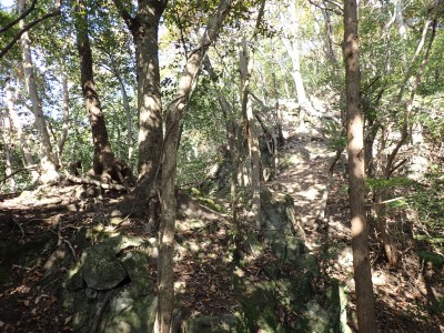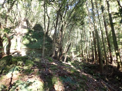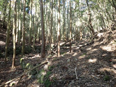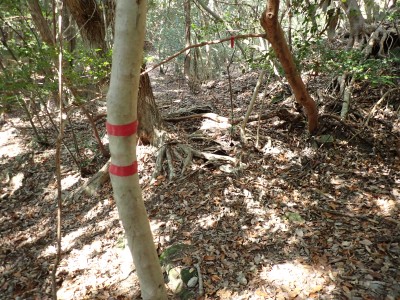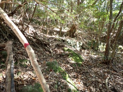 | 巨石にぶつかると左へ | 石垣が点在する | 赤テープが結構ある | |