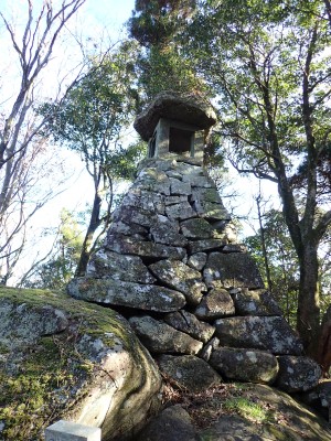| 巨石が点在すると山頂(とりあえず山頂は素通り) | 河野貞八が建立したと言う石灯籠(9:44) | 北側は周防灘 | |