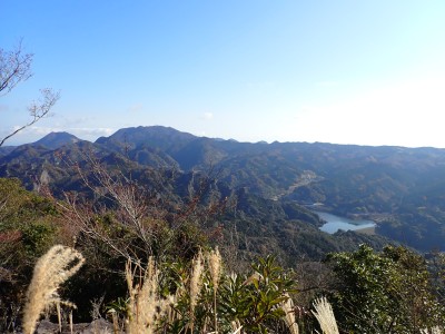 | 石碑がある | 北西には、猪群山、ハジカミ山、尻付山などが見える | 北東には両子山、手前に並石ダム湖 | |