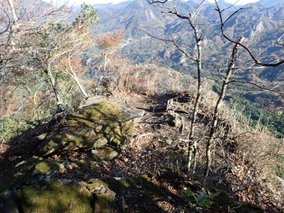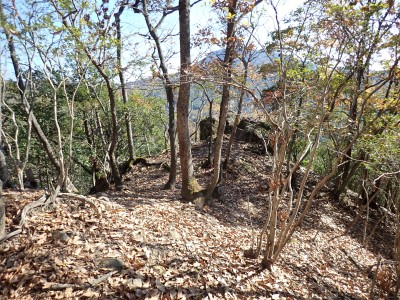 | 山腹を巻いてショートカット | このルート唯一の展望所(12:48) | 屋山が見える | |