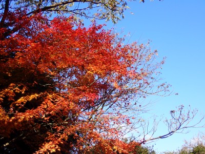 | 残り少ない紅葉を楽しむ | きれいだなぁ | シャクナゲに囲まれた石段を降りる | |