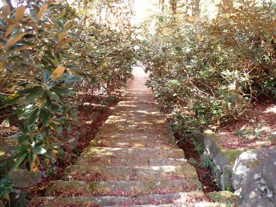 | 国東塔(県指定有形文化財) | コンクリートの道を歩く | シャクナゲがたくさん植えられている | |