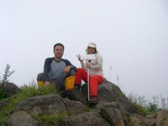 | 諦めて急斜面を登り返すところ | 再び山頂で仲良く | 下山は山腹コースを |