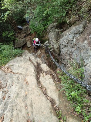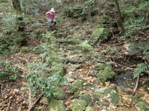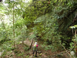 | ここは人工的な石段 | 大きな岩の横を通過 | 間違えやすいがここは真っすぐに(13:16) |