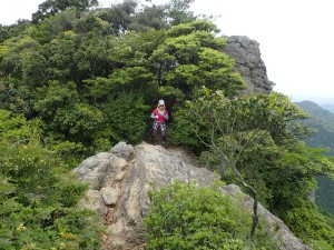 | 天童岩の撮影ポイント(右) | 右端に降る家内が映っている | なんじゃ?? |